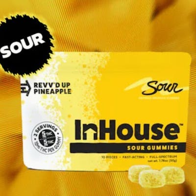5mg THC per serving | packaged as 10mg, split in half for 5mg serving size Get ready to pucker up, paradise-style! This tropical candy brings the zing with a juicy pineapple blast and a cheeky sour twist. It's like a beach party in your mouth—no sunglasses required. Sweet, tangy, and totally irresistible! InHouse Gummies are full-spectrum, fast-acting sweet treats available in delicious flavors and unique ratios of THC and a variety of cannabinoids for whatever experience you choose. With an onset of 15 minutes, our sugar-coated gummies are vegan & gluten-free, naturally flavored and colored with real fruit juice and made without preservatives or high-fructose corn syrup.