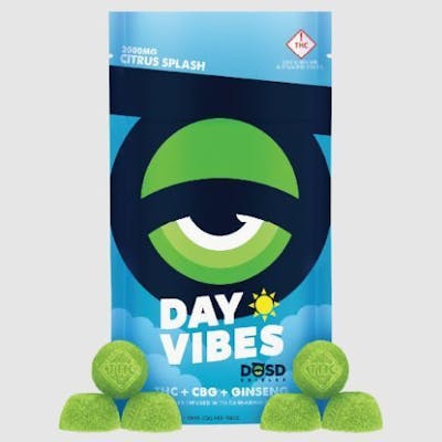 These bite-sized edibles are infused with cannabinoid nanoparticles for increased bioavailability, quicker onset, and extremely consistent experience with every gummy and batch. Day Vibes Nano Bites - Citrus Splash Flavored Gummies infused with Water-Soluble THC & CBG Cannabinoid Nanoparticles + Ginseng. What are THC Nanoparticles? Our DAY VIBES Nano Bites contain cannabinoid nanoparticles (made from ultra-refined cannabis extract), which are utilized by the body much more efficiently than unrefined oils. With increased bioavailability of THC & CBG, you can expect more out of your dose...with far less waiting. DOSD Nano Bites were created to mimic the consistency of traditional gummy brands found in grocery stores. Infused with water-soluble cannabinoid nanoparticles for quicker absorption and increased bioavailability. Average Onset: 20-25 minutes INGREDIENTS: Glucose Syrup, Cane Sugar, Water, Gelatin, Sorbitol, Vegetable Glycerin, Tartaric Acid, Natural & Artificial Flavoring, THC Water-Soluble Distillate Blend, Natural & Artificial Coloring. DIETARY RESTRICTIONS: Gluten free.