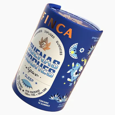 Brand Overview: FINCA crafts high-quality infused products with a focus on clean ingredients, consistent effects, and standout flavor. Every gummy and vape we make is thoughtfully formulated and built on a commitment to doing things the right way: no shortcuts, no compromises, no BS. We believe that cannabis should feel good in every sense, in how it works, how it tastes, and how it’s made. That’s why we’re obsessed with sourcing clean, reliable ingredients and dialing in precise formulations that you can actually count on, time after time. Inspired by the vibrant fruit flavors of Latin America, our products bring bold taste and trusted performance together in every batch. Whether you’re looking to chill, sleep, focus, or get the party started, there’s a FINCA for your vibe. Our goal is simple: to deliver infused goods that are effective, enjoyable, and made with care. From the recipe to the wrap, every detail is considered, so you can just enjoy the ride. Description: Unwind con agave-infused gummies made to slow your thoughts, relax your body, and ease you into sleep mode. Each piece blends smooth agave flavor with 10mg THC + 5mg CBN and a dreamy terpene blend: Linalool (deep calm), Myrcene (gentle sedation), and Beta-Pinene (light breath, clear rest). Crafted for cozy nights, no-screen routines, and uninterrupted dreams — the kind that feel like velvet. Take one, get soft, drift off. Nano enhanced for fast onset Vegan & Gluten Free Flavor: Agave Terpenes: Lynalool, Myrcene & Beta-Pirene Size: 10 gummies Strength: 1Omg THC + 5mg CBN Effect: Sleep INGREDIENTS Organic Cane Sugar, Reverse Osmosis Water, Organic Tapioca Syrup, Organic Fruit Juice From Concentrate, Fruit Pectin, Organic Fruit Flavoring, Natural Food Coloring, MCT Oil, Cannabis Extract, Soy Extract, Terpenes. Allergens: SOY Solvent Used: Ethanol