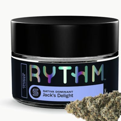 SATIVA Jack's Delight Jack Herer x Headmount is an uplifting sativa with invigoratingly sweet and citrusy flavors worthy of its iconic lineage. RYTHM Premium Flower offers a variety of expertly cultivated and meticulously cured strains with optimal potencies, lush aromas, and rich flavors.