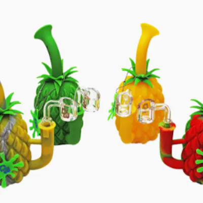 The Dabware Pineapple rig feature a build in stash. Feel like your on a vacation everyday when your inhaling form this fruity rig.