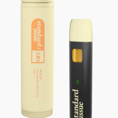 Peach. Sweet and simple. Juicy nectar, orchard fresh and no need to wait until summer. Peach season is in-hand with a portable, discreet and all-around dependable all-in-one vape. Cannabis ready to consume — whenever you need it. That's Standard Issue. Stripped of excess, honed to essentials, and designed to keep pace — not for show, but for real life. Consistent, dependable, and ready when you are. Standard Issue: everything you need, nothing you don't. Triple-distilled distillate for purity. Botanical terpenes for taste. No gimmicks - just smooth pulls and big flavour. Welcome to the new standard.