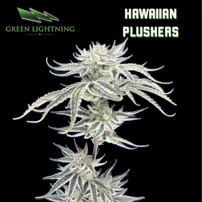Hawaiian Plushers by Green Lightning is a sativa-dominant hybrid cannabis strain, a genetic cross between Peach Ringz and Lemon Gushers. This strain is known for its energizing effects and a flavor profile that evokes a tropical paradise with notes of sweet and sour fruit, tinged with petrol and pepper.