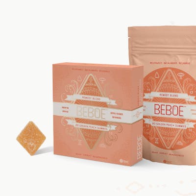 20 Gummies per container | 100mg THC * 200mg CBD per container | 5mg THC * 10mg CBD per Gummy Flavor: Golden Peach Effect: Artfully blended for bliss 100% Natural // Socially-dosed // True-to-fruit flavor // Contains: coconut