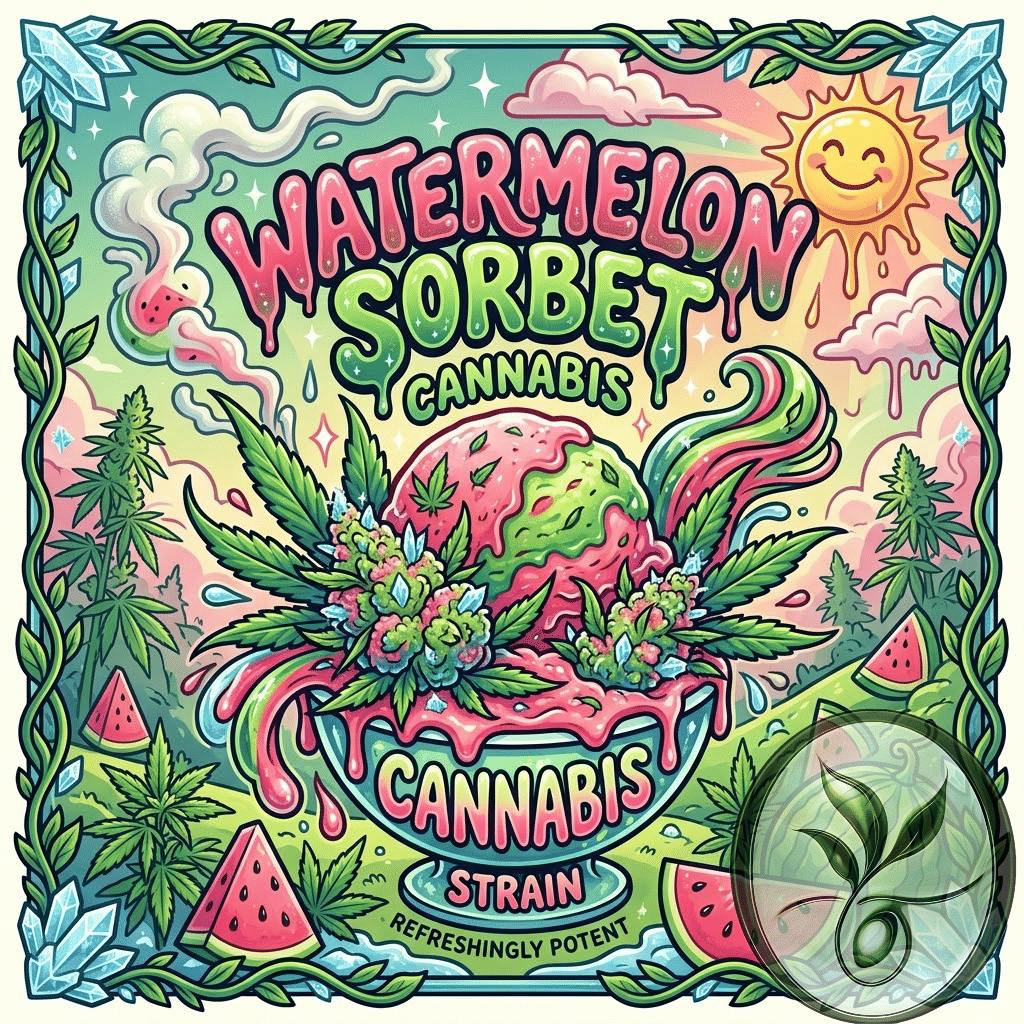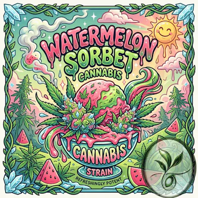 Watermelon Sorbet is a potent hybrid cannabis strain renowned for its sweet, tropical fruit profile and versatile effects. While primarily an indica-dominant cross of Gelato #45 and Watermelon Zkittlez, its effects can vary significantly depending on the cultivator, ranging from deep relaxation to energetic euphoria. Genetic Lineage & Potency: -The most common version of Watermelon Sorbet is an indica-dominant hybrid (approx. 70% Indica / 30% Sativa). -Parents: Gelato #45 x Watermelon Zkittlez (aka Watermelon Z). -Alternative Origin: Some breeders (like Lost River Seeds) produce a sativa-dominant variant by crossing KC Mango with Watermelon Z. -THC Content: Typically ranges from 21% to 26%, making it a potent choice for experienced users. Key Characteristics: -Aroma: A sweet, sugary blend of creamy melon gelato, earthy diesel, and spicy herbs. -Flavor: Lush ripe watermelon upfront with creamy citrus tones and a smooth, sugary finish. -Appearance: Dense, grape-shaped blue-green nugs with orange hairs and a frosty layer of milky white trichomes. -Top Terpenes: Typically dominated by Limonene (citrus/uplifting), Caryophyllene (spicy/relaxing), and Myrcene (earthy/sedative). Typical Effects & Usage: -Watermelon Sorbet is often described as having a "two-phase" high that satisfies both mind and body. -Initial Lift: Users frequently report a happy, uplifting head high that can feel energetic and giggly in social settings. -The Settle: Transitions into a soothing, tingly body relaxation that eases tension without being immediately sedating. -Medical Use: Commonly selected to treat chronic pain, inflammation, depression, and muscle spasms.