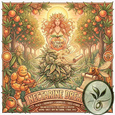 Nectarine Dream is a balanced hybrid cannabis strain known for its distinct fruit-forward profile and functional, uplifting effects. It was developed by Copycat Genetix and is frequently produced by cultivators like HighMark Provisions in Massachusetts and Garden State Exotix in New Jersey. Genetic Lineage & Potency: -Parents: A cross between Creamsicle and The Queen. -THC Content: This is a high-potency strain, typically testing between 30% and 32% THC for flower, with some batches reaching a total active cannabinoid (TAC) level of over 36%. -Type: Balanced Hybrid (approx. 50% Indica / 50% Sativa). Key Characteristics: -Aroma & Flavor: It features a "succulent" profile of fresh nectarine, sweet citrus zest, and creamy vanilla undertones. -Appearance: Dense buds with vibrant green and orange highlights, often showcasing a heavy coating of trichomes. -Terpene Profile: The experience is shaped by a high concentration of Beta-Caryophyllene (spicy), Limonene (citrus), and Beta-Myrcene (earthy). Typical Effects: -Nectarine Dream is favored for daytime or any-time use because it provides relief without being overly sedating. -Uplifting & Mellow: Users often report feeling happy, energetic, and calm. -Functional Relaxation: It tes a sense of mental clarity and creativity, followed by a light physical relaxation that eases tension.