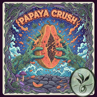 The Papaya Crush cannabis strain is a potent, indica-leaning hybrid known for its loud, fruit-forward aroma of ripe papaya, tropical fruits, and a creamy, gassy finish. It delivers fast-acting, euphoric effects followed by deep body relaxation, making it ideal for evening use. Strain Profile: -Genetics: A cross between Papaya and Bolo Runtz. -Aroma & Flavor: A burst of tropical fruit sweetness, predominantly ripe papaya, with hints of citrus candy, followed by subtle notes of creamy gas and light earthy funk. -Appearance: Dense, resinous buds with vibrant green colors, occasional purple hues, and a frosty coating of trichomes. -THC Content: This is a high-potency strain, with average THC levels often around 25% and THCA levels reaching up to 27.76% in some tests. Effects and Medical Uses: -Papaya Crush offers a quick onset of effects that are both uplifting and deeply calming. -Positive Effects: Users experience an initial wave of happiness and euphoria that brightens the mood, quickly followed by a profound, tingly body relaxation. It is described as heavy but smooth, leading to a restful state without overwhelming sedation. -Medical Uses: Its calming and pain-relieving properties make it a go-to strain for medical patients suffering from stress, chronic pain, and insomnia. It may also stimulate appetite. Dominant Terpenes: -The prominent terpenes contributing to its unique profile include: -Limonene: Associated with citrus notes and mood-elevating properties. -Beta-Caryophyllene: Provides a slightly spicy quality and potential anti-inflammatory benefits. -Myrcene: Contributes to the earthy aroma and may enhance relaxation. -Linalool: Adds a floral scent and is known for its anti-anxiety effects. -Humulene: Offers earthy/herbal notes and additional anti-inflammatory benefits.