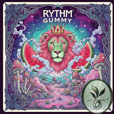 The Rythm Solventless Gummy 100mg - Watermelon product contains ten vegan-friendly gummies, each with 10mg of THC, for a total of 100mg THC per pack. These are made with clean, full-spectrum live rosin extracted without solvents for a true-to-the-plant experience. Product Details: -Brand: Rythm -Product Type: Solventless Live Rosin Gummies (Edibles) -Total THC Content: 100mg per package -Serving Size: One gummy (10mg THC) -Quantity: 10 gummies per pack -Strain Association: The live rosin used in these gummies is typically sourced from Rythm's Animal Face flower, an indica-leaning hybrid strain. -Ingredients: Crafted using only ice, water, heat, and pressure. Active ingredients include tapioca, sugar, pectin, citric acid, sodium citrate, coconut oil, cannabis extract, artificial flavors, yellow #6, and terpenes. -Texture/Flavor: Described as having a soft, melt-in-your-mouth texture with a crisp, authentic, and juicy watermelon flavor, followed by an earthy, strain-specific finish. Effects and Usage: -These gummies are designed to deliver balanced effects, combining the uplifting mood effects of the Limonene terpene and the relaxing, anti-inflammatory properties of Beta-Caryophyllene. Reported Effects: Users often experience a sense of calm, happiness, and relaxation. Some also report feeling a degree of uplift and energy. They are praised by some users for managing body pain and arthritis. Onset and Duration: Effects may take up to 2 hours to begin, and can last for 3 or more hours. It is recommended to "start low and slow" with edibles due to the delayed onset.