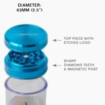 THIS 4 PIECE 2.5” ALUMINUM GRINDER COMES WITH A STORAGE CHAMBER. CRAFTED FOR LONG-LASTING DURABILITY, THIS GRINDER PROVIDES TOP-NOTCH GRINDING PERFORMANCE WITHOUT BREAKING THE BANK.