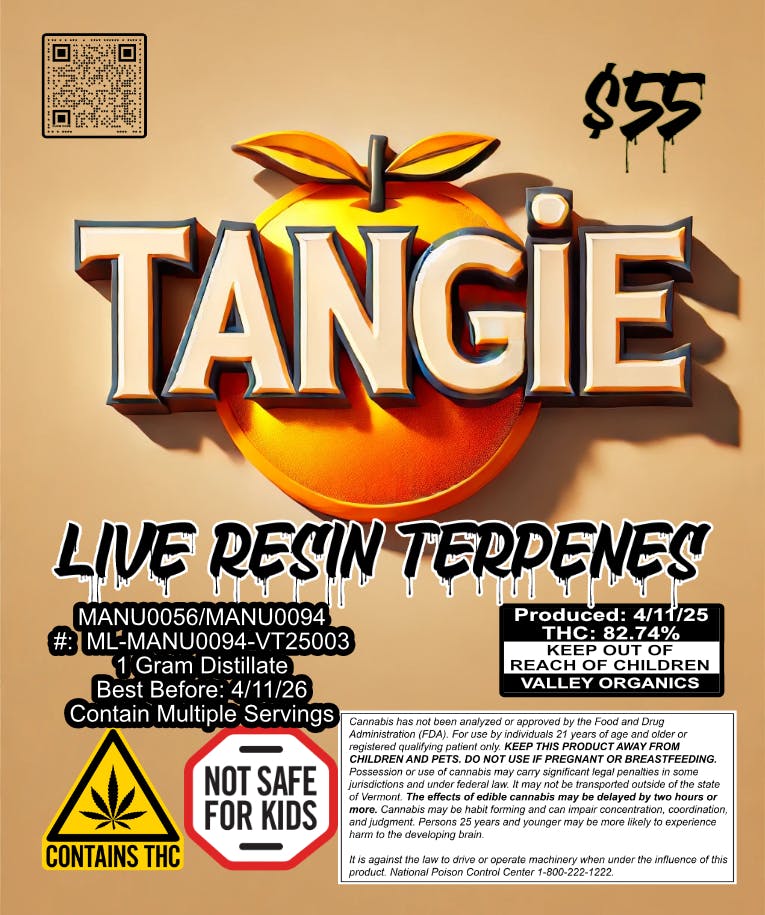 Valley Organics- Tangie Live Resin "DISPOSABLE"Cart 82.74% THC | 1g Distillate