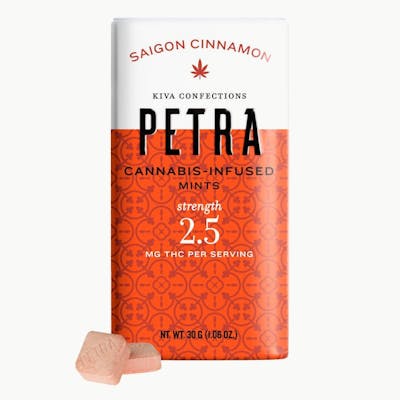 Sweet and spicy with just a touch of heat, Saigon Cinnamon Petra freshens your breath and warms your senses. Highly portable, decidedly poppable, and subtly powerful, this low-dose, sugar-free and vegan mint is subtly dosed for an optimal cannabis experience every time. Whether spicy, sweet, savory or strong, Petra has a flavor that everyone can savor. Since 2010, Kiva’s goal has been to create an edible that redefines what a cannabis confection can be. From our artisanal approach to making chocolates to our inventive take on gummies, we’ve dedicated ourselves to crafting delicious, trustworthy, and premium edibles you can feel good about eating. Made in a facility that processes milk, nuts, soy and gluten.