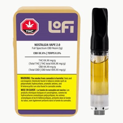 LoFi’s Nostalgia Vape 2.0 is a cured resin vape in collaboration with Wildcard Extracts and Terroir Craft Farms. The cured resin was made with Wildcard's hydrocarbon extraction system optimized for full-spectrum extraction. The 1g vape cartridge has a ceramic core and is fitted for a 510-thread battery. Made in BC.