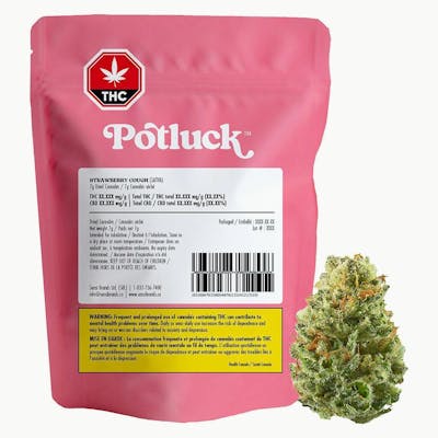 Get ready for Potluck’s newest sweet treat—Strawberry Cough! This sativa strain from the Fruit Collection bursts with a bold, sweet-skunky aroma and smooth notes of fresh strawberry and herbal spice. A go-to for daytime sessions or flavour-first stashes, Strawberry Cough brings on the flavour in classic Potluck fashion—fruit-forward, high-THC, and ready to smoke.