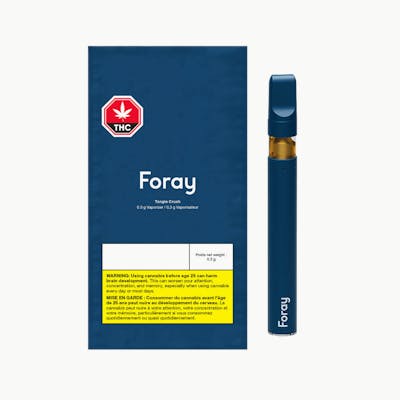Foray’s Tangie Crush is a sativa-dominant formulation with an approachable potency bursting with sharp orange and sweet tangerine, followed by a smooth, earthy cannabis finish. Bold, juicy, and tangy—this is citrus with a little crush. Crafted with premium distillate and a blend of flavouring agents housed in a sleek, rechargeable 0.3g pen.