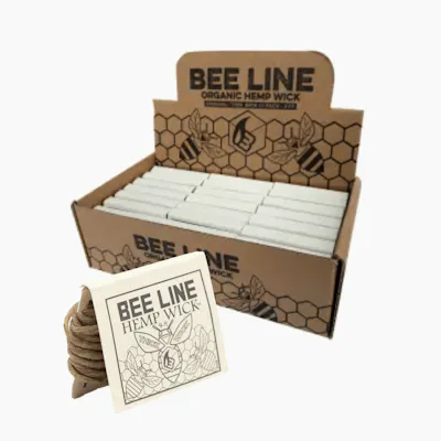 Bee Line is without a doubt the finest hemp wick in the world. Certified Organic Hemp Wick and every inch of Bee Line hemp is harvested by hand in the rolling hills of Eastern Europe before being bathed in fresh beeswax collected at a neighbouring sustainable farm. But let's be honest, the best part about Bee Line is the taste. The perfect sweet aroma and clean burn make it the best hemp wick money can buy. Try it and you will find out why it's called the connoisseurs choice! Each pack contains: 9' of Hemp Wick