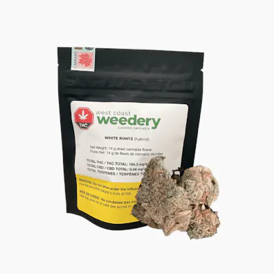 White Runtz is a balanced hybrid strain created from a cross of Gelato and Zkittlez genetics. The aroma features citrus and pine upfront with sweet caramel and vanilla notes to follow