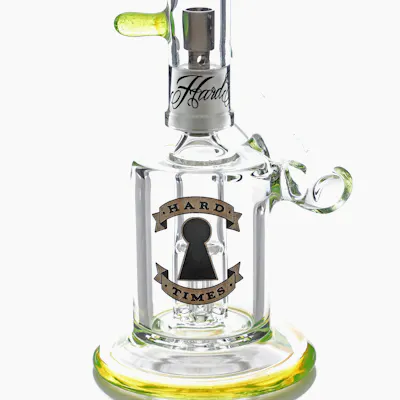 14mm Male Joint to 4-Leg Tree Perc 14mm Dome and Nail Included Height 5.5" The Hard Times 5.5" Slyme 4-Leg Side Car Rig is compact and packs a punch. The 4-leg tree perc allows for a smooth pull, while the extended arm mouthpiece keeps you away from the heat. The base rim, mouth rim, and dome handle are all finished in a contrast slime green glass. Hard Times decals are featured on the chamber and dome. The titanium nail included is durable and has excellent heat retention.