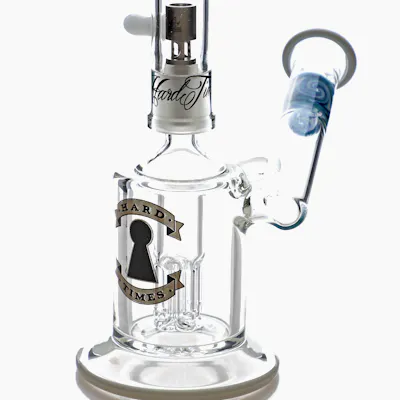 14mm Male Joint to 4-Leg Tree Perc 14mm Dome and Nail Included Height 5.5" The Hard Times 5.5" White/Blue 4-Leg Side Car Rig is compact and packs a punch. The 4-leg tree perc allows for a smooth pull, while the extended arm mouthpiece keeps you away from the heat. The mouthpiece arm has a white/blue wigwag detail that matches the white contrast glass on the base rim, mouth rim, and dome handle. Hard Times decals are featured on the chamber and dome. The titanium nail included is durable and has excellent heat retention.