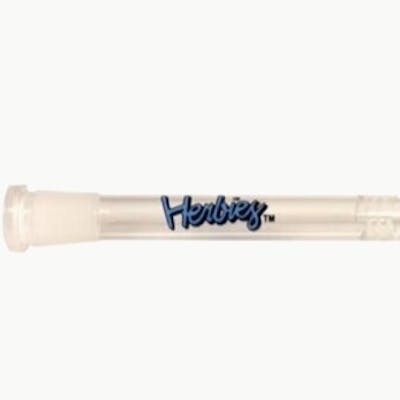 Herbies slit hole diffused glass down stems with straight through bottom and coloured logo. Replacement stems for 7mm beakers and straights (universal length). For use with 14mm bowl.