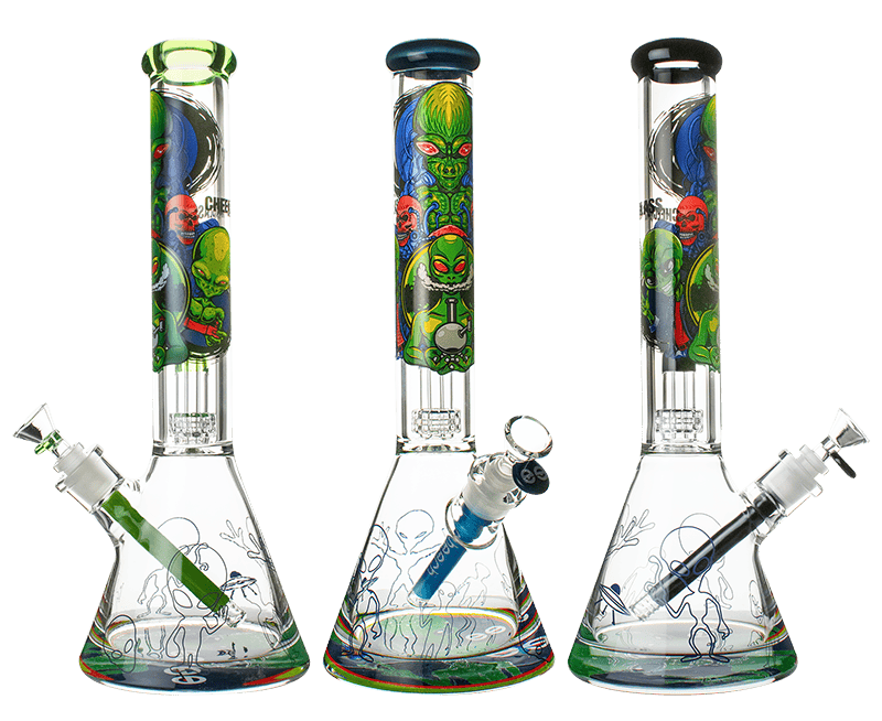 Cheech Glass | 16" Beaker (Alien Print with Percolator) - Lime Mouth Ring