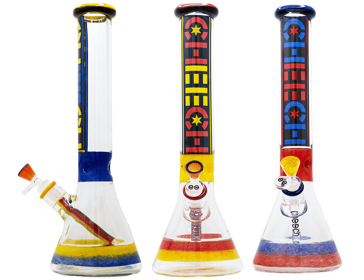 Cheech Glass | 15" Beaker (Blaster Pattern) - Blue/Yellow/Black