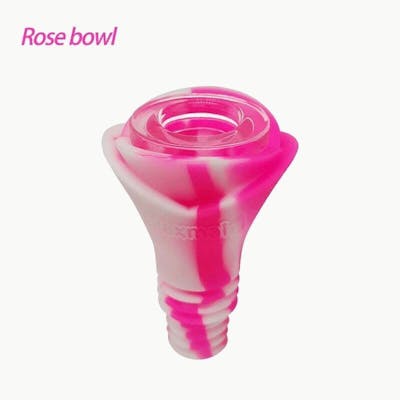 Waxmaid bowls are universal silicone bowls with a glass insert that fit both 14mm and 19mm joints and are shaped like a rose. They are made from BPA free, and FDA approved platinum cured silicone.