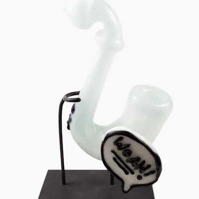 White sherlock hand pipe, hand blown by glass artist ACE.