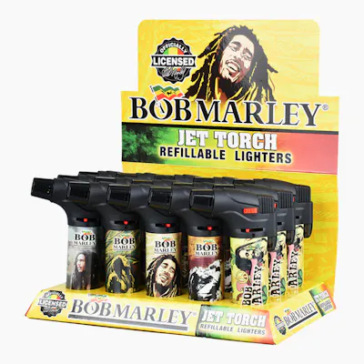 Premium Torch Lighter Collection This premium torch lighter collection features the iconic Bob Marley Legend design, standing 4.5 inches tall. Each lighter is refillable for long-lasting use and features a powerful torch flame. The Legend assortment brings unique designs to each piece, making every lighter distinctive. The 15-count display format makes it perfect for maintaining a steady supply of these premium lighters. Key Features: Height: 4.5 inches for comfortable handling Type: Refillable torch lighter for cost-effective use Design: Bob Marley Legend artwork for distinctive style Display: 15-count format for convenient storage Feature: Adjustable flame control for precise performance Specifications: Type: Torch Lighter Height: 4.5 inches Brand: Bob Marley Display: 15-Count Display This premium lighter collection combines reliable performance with iconic Bob Marley branding. The refillable design ensures long-term value, while the Legend assortment adds a unique touch to each pie