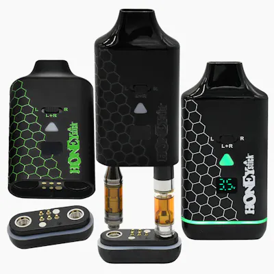 HoneyStick Duo VV Dual Concealer 510 Battery 650mAh Advanced Dual-Chamber Vape Device The HoneyStick Duo VV Dual Concealer is an innovative vape pen designed for those who enjoy switching between different vaping experiences. This compact device features dual chambers, allowing users to vape two separate cartridges simultaneously. Key Features: Dual-Chamber Design: Vape two separate cartridges at once. Variable Voltage Control: Adjustable settings for optimal vapor production. 650mAh Battery Capacity: Long-lasting performance. Display Screen: Shows battery life and current voltage setting. 510 Threaded Connection: Compatible with most 510-threaded cartridges. Specifications: Type: Dual-Chamber Variable Voltage Vape Pen Battery Capacity: 650mAh Voltage Range: 2.5V-4.0V Thread Type: 510 Important Safety Information: Use with proper vaping equipment and follow manufacturer guidelines. This innovative HoneyStick Duo VV Dual Concealer offers users the flexibility to vape two separate cart