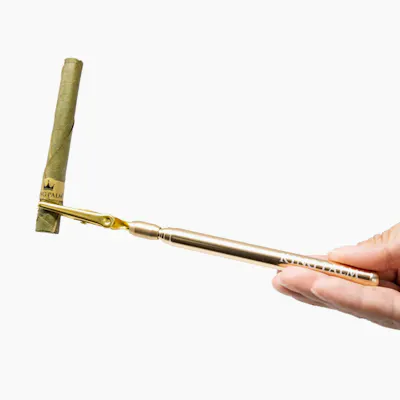 This is the all-gold edition of King Palm’s extendable smoke clip. Holding a blunt or joint will quickly leave a strong scent on your fingers that doesn’t come off easily. This smoke clip solves that problem, moving the smoke away from your hand. You can even enjoy a smoke from the comfort of your pool or hot tub. The strong claw clasp ensures your roll will stay put as long as you’re smoking. The King Palm Smoke Clip is a retractable wand that can extend to up to 1.5 feet in length. The Smoke Clip gives the next person a handle to grab when the roll gets short instead of trying to grab onto the filter.
