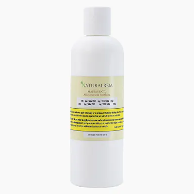 Naturalrem Massage Oil contains 500 mg of full spectrum CBD. Scientifically designed with more than 40 years of dedication from our lead wellness formulator, our natural ingredients (such as aloe vera extract and sunflower seed oil) with the scent of lemongrass. Transdermal and non-greasy. Apply a small amount of into the palm of hands, massage the oil on to desired area. Reapply as needed. Do not mix with other products with oils. Avoid broken skin and sensitive areas. For topical use only.