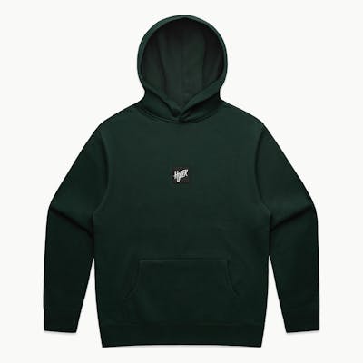 Enjoy the relaxed fit, Pine Green, Hytek Block Hooded Sweatshirt. This sweatshirt is, preshrunk and has an embroidered square logo. It includes a pullover hoodie, drop shoulder, kangaroo pocket, self-fabric lined hood, no drawcord, and sleeve cuff ribbing Mid weight, 9.4 oz, 80% cotton 20% recycled polyester CVC fleece Care Instructions: Machine wash cold with like colours. Do not bleach. Do not tumble dry. Do not dry clean. Line dry in shade.