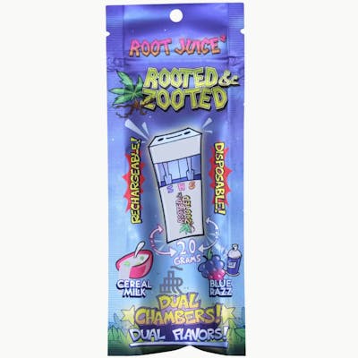 Rooted & Zooted Dual Chambered Disposable Vapes are crafted for the ultimate cannabis experience, offering a unique and customizable session in one sleek device. Each disposable features a dual-chamber design, allowing you to enjoy two distinct strains or extracts in a single vape. This innovative setup lets you switch between flavors or effects with ease, delivering smooth, flavorful hits every time. Packed with high-quality cannabis oil, our dual-chamber disposables are perfect for both connoisseurs and casual users, offering a potent, long-lasting, and convenient option for on-the-go enjoyment. Whether you're looking to mix and match or enjoy a perfectly balanced high, Rooted & Zooted disposables are designed to elevate your experience.