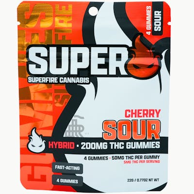 Experience the true Superfire! Bursting with flavor, these all new sour gummies are available in a 4pk of 50mg fast-acting gummies, a total of 200mg of THC!
