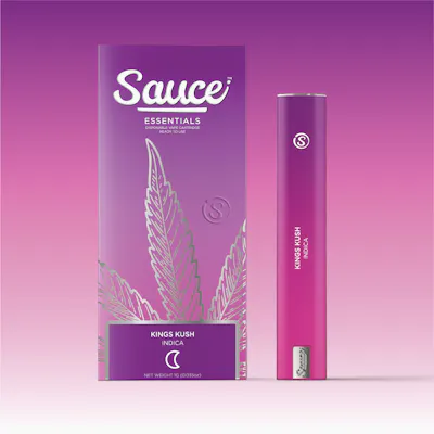 SAUCE brings you Kings Kush Live Resin Indica Disposable, a premium 1.25g ready-to-use cartridge crafted for ultimate relaxation and convenience. This pure indica strain delivers deep, full-body calm paired with sedating effects perfect for unwinding after a long day or easing into restful sleep. The live resin extraction preserves rich cannabis-derived terpenes, offering an authentic flavor profile of earthy pine, sweet herbs, and subtle spice. Each smooth draw provides potent relief and tranquil euphoria, making it ideal for evening use or stress management. The sleek disposable design means no charging or refilling—just inhale and enjoy. Whether you're seeking pain relief, combating insomnia, or simply craving deep relaxation, this Kings Kush cartridge delivers consistent quality and powerful indica effects in a portable, user-friendly format. Experience the difference of live resin craftsmanship with SAUCE.