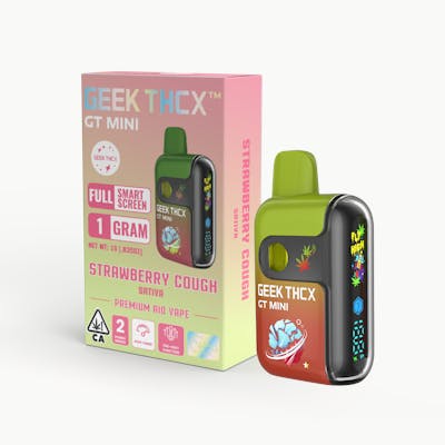 GEEK THCX presents the Strawberry Cough AIO Sativa 1G cartridge, a ready-to-use vape that captures the legendary essence of this beloved strain. This convenient all-in-one device delivers uplifting, energetic effects perfect for daytime use, sparking creativity and focus while keeping you social and euphoric. The flavor profile bursts with sweet strawberry notes balanced by earthy, herbal undertones that stay true to the strain's iconic taste. Ideal for those seeking motivation and mental clarity, this sativa-leaning experience helps you stay productive and uplifted throughout your day. The 1G cartridge offers exceptional value and potency in a sleek, portable format that's ready to enjoy anywhere. No setup required—just inhale and experience the smooth, flavorful vapor that's made Strawberry Cough a timeless favorite among cannabis enthusiasts.