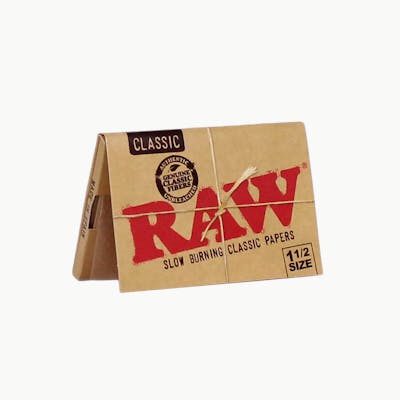 RAW Classic 1½ is the size for people who like a wider smoke or want some extra paper for added burn energy. Made from unbleached vegan plant fibers with our proprietary criss-cross steam imprint engineered to prevent runs and produce a clean, even burn, RAW Classic 1½ papers are a favorite of discerning smokers all over the globe.