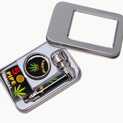 It is a compact and practical collection of smoking accessories. It comes with the following products: Metal Pipe: A durable and reusable smoking device, often preferred for its ease of use and portability. Grinder: This tool helps break down materials into finer particles, ensuring a smoother smoking experience. Pocket Screen: A handy item to prevent debris or ash from entering the pipe, enhancing the overall experience.