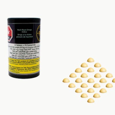 Hash Rosin Drops Indica are solventless, strain specific, and high potency 10mg x 25-piece format. Vegan and gelatin-free with no sugar, or sugar substitutes, and a clean ingredient list.