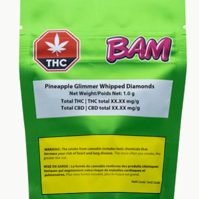 Pineapple Glimmer Whipped Diamonds are BAM's newest innovation. THCA Diamonds whipped with cannabis derived terp sauce with a dash of botanical terps to create this new texture. Packed with flavour and potency, diamond whips are here to wow!