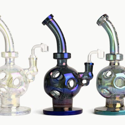 The Swiss were pioneers in rig construction, with preliminary designs dating back centuries. Just kidding. This is called a Swiss globe rig because it looks like an alien planet had a baby with some fine Gruyere. With its UFO perc and signature terminator finish, this rig is ready to take you to another galaxy. Will there be gourmet cheese too? That’s up to you.