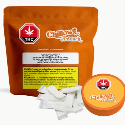 Meet Chillows by Potluck—smoke-free, spit-free THC pouches made for bold flavour and discreet, anytime enjoyment. Tangy Citrus Chillows deliver a juicy burst of bright, tart citrus flavour with 10mg of THC per pouch, lighting up your taste buds with every hit of zest. Powered by our proprietary two-phase infusion technology, Chillows are designed for rapid onset, optimized absorption, and consistent effects—all in a discreet, pocket-sized pouch. Go Chill… Anywhere, Anytime.