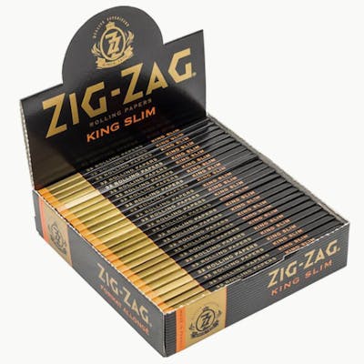 Zig Zag is a name that is famous for rolling papers due to their high quality and reliability. Zig-Zag Kings Slim rolling papers were designed for smokers who enjoy an extended, all natural smoke. King Size Slim combines the length of a King Size with the width of a 1 1/4 paper, giving the experienced roller the perfect amount of paper troll in any shape while still maintaining the longer burn time associated with King Size.
