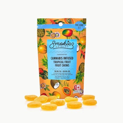 Smokiez Tropical Fruit Chews are NOT YOUR AVERAGE GUMMY™ These delicious fruit chews are a tasty and satisfying way for your customers to medicate!They are also Vegan, Gluten Free, Dairy-Free, and contain NO High Fructose Corn Syrup.