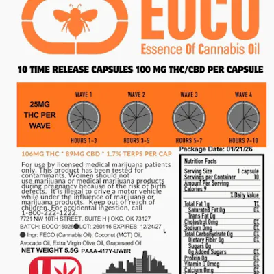 EOCO, or Essence of Cannabis Oil, is a Time Released Full Spectrum Cannabinoid Capsule.
