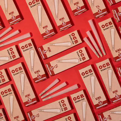 Yellowbird Wholesale-OCB Brown Rice Unbleached Mini Cones - 10 Cones per pack