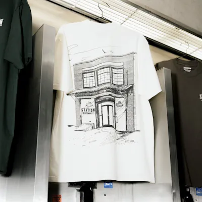 T-Shirt with The Station Logo on Front Right Side & Sketch of Building on Back