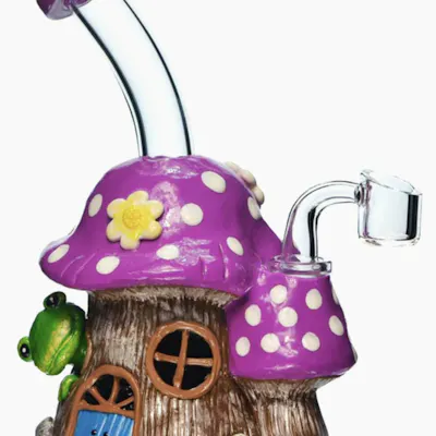 A compact glass dab rig designed for smooth, flavorful concentrate sessions with an eye-catching mushroom treehouse design. The sturdy build and stable base make it easy to handle while delivering clean, efficient filtration for your dabs. Perfect for both beginners and seasoned concentrate users looking for a fun, functional piece.