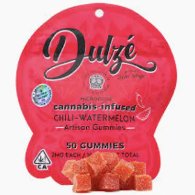 DULZE Chili Watermelon Gummies deliver 100mg of hybrid cannabis in a bold, unexpected flavor fusion. These gummies combine juicy watermelon sweetness with a spicy chili kick, creating an exciting taste experience that's both refreshing and adventurous. Perfect for those seeking balanced effects, this hybrid formulation offers a harmonious blend of relaxation and euphoria without leaning too heavily in either direction. Each gummy provides a precisely dosed, convenient way to enjoy cannabis edibles. The watermelon flavor brings tropical, fruity notes while the chili adds a savory, spicy twist that tingles the palate. Ideal for social situations or creative pursuits, DULZE gummies make dosing simple and enjoyable. Whether you're looking to unwind after a long day or elevate your mood during activities, these chili watermelon edibles offer a unique, flavorful journey. DULZE combines quality ingredients with innovative flavor profiles to create memorable cannabis experiences that stand out from typical gummy offerings.