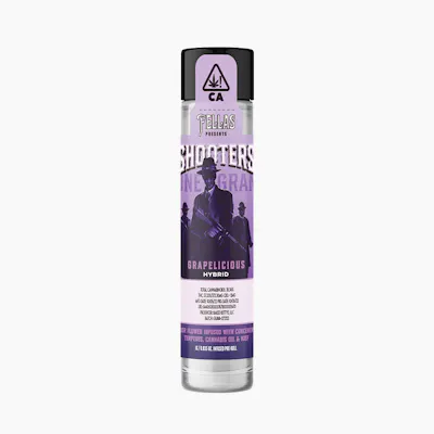 SHOOTERS GRAPELICIOUS Infused 1G Preroll brings together quality flower and potent infusion in a convenient, ready-to-enjoy hybrid experience. This single-gram preroll delivers a balanced effect that blends the best of both worlds—uplifting cerebral energy meets soothing body relaxation. Expect a juicy, grapelicious flavor profile bursting with sweet and tangy citrus notes that make every puff refreshing and satisfying. Perfect for those seeking a well-rounded session, this infused preroll offers enhanced potency and rich flavor in one smooth smoke. Whether you're unwinding after a long day or elevating social moments, SHOOTERS delivers a flavorful, euphoric, and relaxing experience that's easy to share or savor solo.